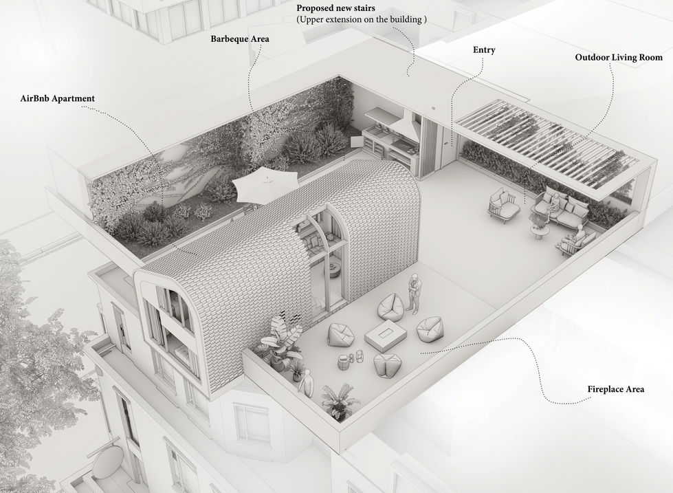 Introducing the new Airbnb Luxury Apartment project, where the first goal is to create a visible and luxurious environment to attract visitors looking to rent an apartment in Central London. This exciting project will feature a pod located on the terrace of a building, offering 360 degree views of London, making it an enticing and luxurious option for potential renters. The apartment is designed for three people, having all the necessary facilities to feel like at home: living room, one master bedroom with double bed, one single bedroom, a kitchen and a bathroom. The materials and colors chosen for the interior design of this Airbnb apartment are purposeful. By creating a design with neutral and light colors, the other aim is to focus on how different materials (light colors) can be combined together. Light colors are associated with feelings like: calmness, positivity and serenity. They create a tranquil atmosphere which is very important for a home to feel relaxed and comfortable.